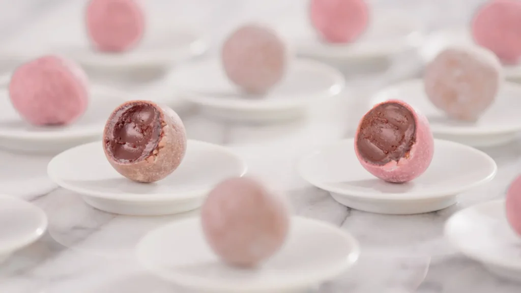 チョコレートの枠を超えた新しいカカオのおいしさを届ける「meiji THE Cacao」から、2025年に登場して話題となった「琥珀ガナッシュ」。 今年はさらにカカオの香りが豊かになり、数量限定で再登場します。 琥珀糖からヒントを得た、しゃりっと繊細なソフトコーティング。その内側から、濃密なガナッシュがとろりとあふれ出します。