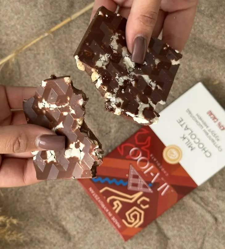 その個性をミルクチョコレートと組み合わせることで、甘さと塩味が絶妙に調和した新感覚の味わいを実現しました。キルギスの自然と食文化を感じる、ここでしか味わえない特別な一品です。