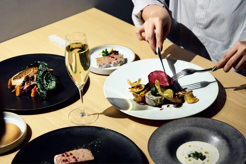 一日の終わりに、丁寧に満たす食事をお届けするために自然な軽さと確かな満足感を両立したameplaヘルシーコースや、愛知県の地産地消の食材を取り入れたオリジナルコース料理をご用意しています。