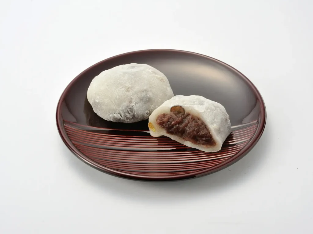 赤えんどう豆を混ぜた生地で小豆粒あんを包んだ大福