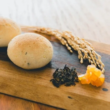 アールグレイの茶葉とオレンジピールを丁寧に生地に練り込みました。バターの代わりにこめ油を使っているので、紅茶と爽やかなオレンジの風味を邪魔しません。「もちもちお米ブランパン」は、小麦粉を一切使用していないグルテンフリーのパンです。玄米由来のミネラル、ビタミンB群、マグネシウム、GABAを含む“RICEO-EX(ライセオ)”を使用しています。素材を活かすこめ油によりきめ細かくやわらかでもちもち食感、米粉本来のおいしさを楽しめます。