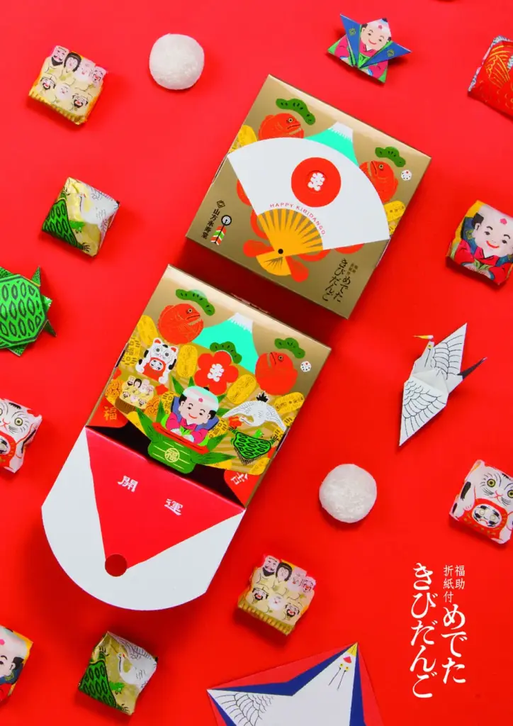 “日本のめでたい”をテーマにしたプレミアムパッケージきびだんごです。