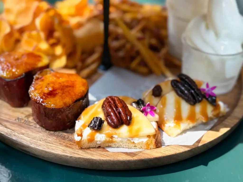 大人気の芋菓アフタヌーンティーセットに秋限定メニューが登場!おからのガトーショコラや、りんごとピーカンナッツのカナッペなどが仲間入り。2025年9月12日(金)から提供開始。