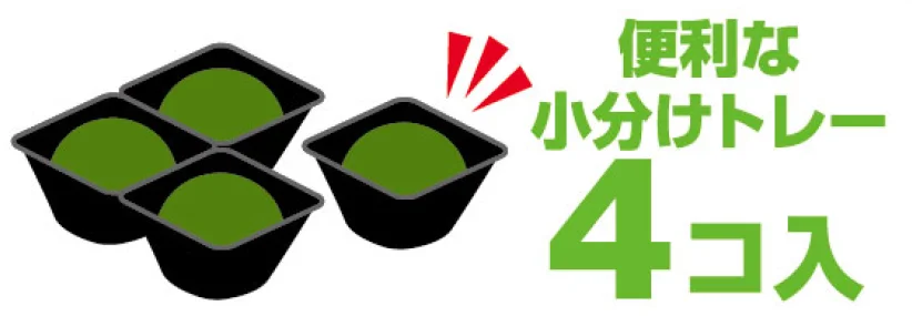 出来たての一番おいしい状態を急速冷凍によりキープすることで“包みたてのおいしさ”を味わえる、人気の餅菓子商品です。電子レンジ対応の切り離せるトレーを採用しており、お皿いらずで食べたい個数だけ時短解凍できます。