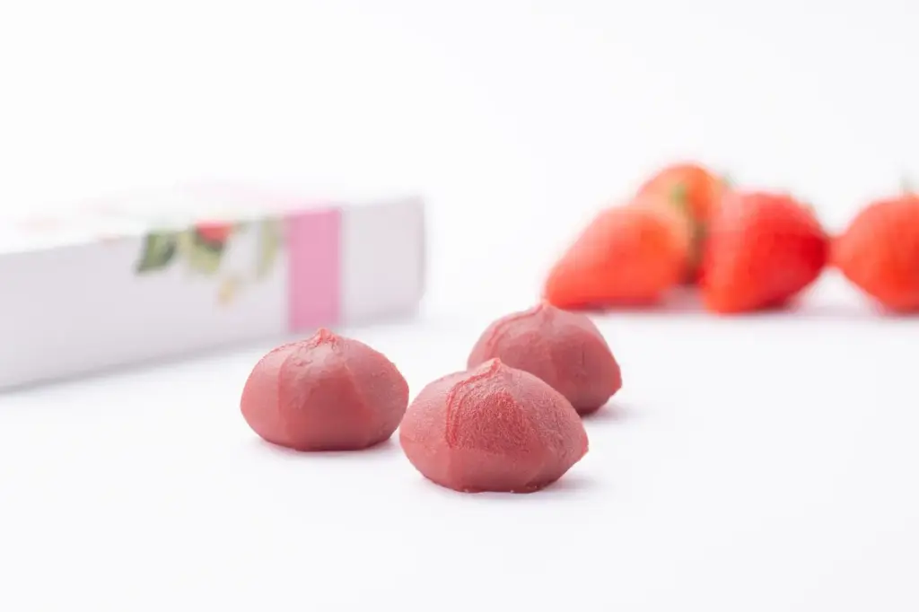 プチっと食感が楽しい粟(あわ)入りのお餅を、いちごの香りとほのかな酸味を生かしたあんで包み、可憐でやさしい甘みが広がります。