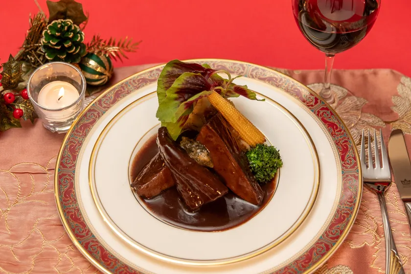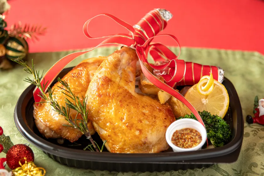 清らかな水と豊かな自然環境にこだわった飼育方法で育った清流鶏の骨付きもも肉を、低温調理でコンフィにし、グリルで香ばしく仕上げたクリスマス限定メニュー。