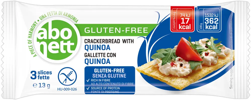 今年40周年になるアボネットは、ハンガリーでは押出成形したフラットブレッド自体の名称として知られ、お子さまの携帯食からシニア世代まで、健康志向な方々の毎日の食生活で親しまれています。