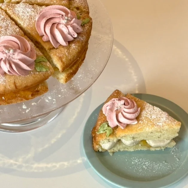 マーマレードジャムとアールグレイ風味の紅茶のホイップクリームをサンドした優しい味わいのケーキです。トッピングは薔薇の花をイメージしたホイップクリームで喫茶店にあるようなレトロなケーキを再現しました。