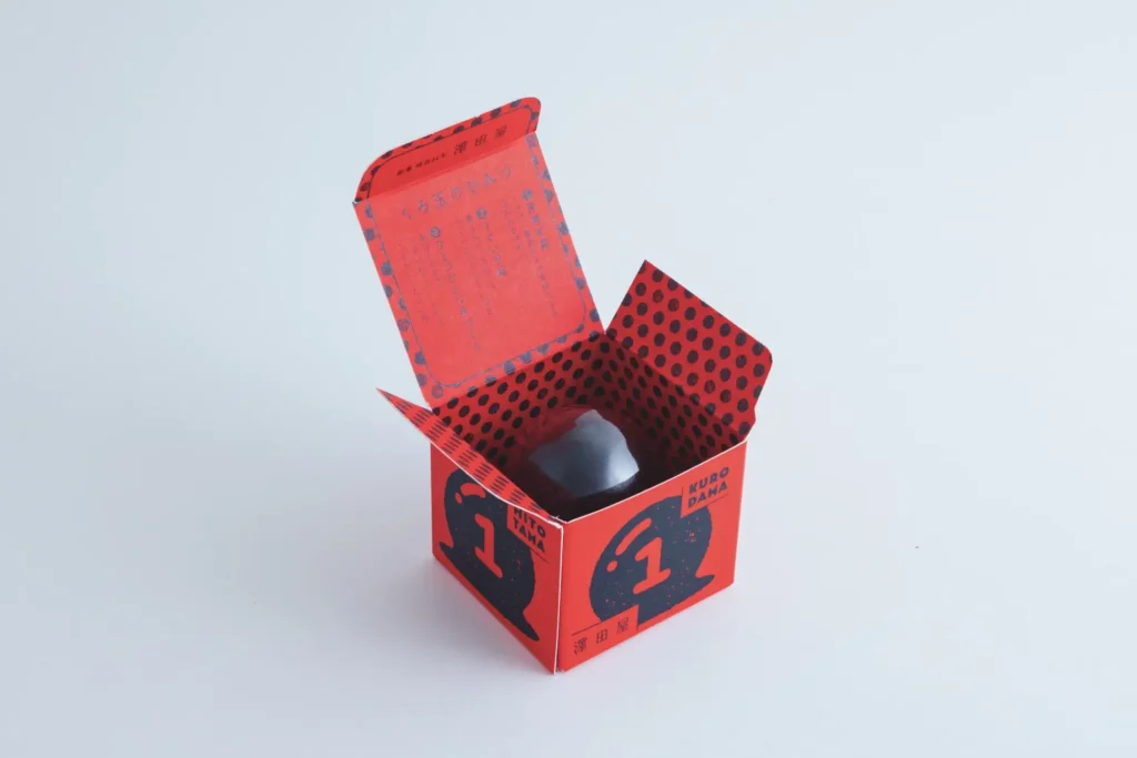 「くろ玉」の包装紙のデザインの要素と、澤田屋の屋号も入れることで、“澤田屋の「くろ玉」”が1玉売りとなって登場したことがわかりやすく伝わるよう工夫しました。