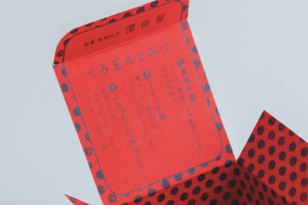 箱を開くと、蓋の面には「くろ玉のひみつ」が書いてあり、くろ玉の材料や製法などのこだわりを知るたのしみもお裾分けできます。