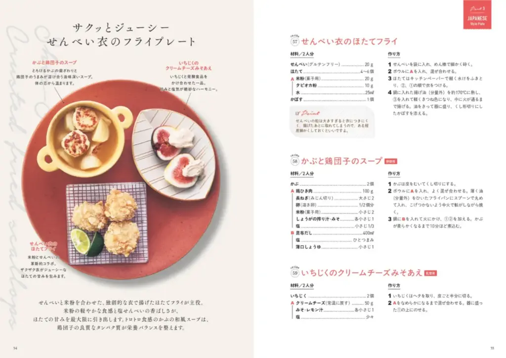 グルテンフリーは大変、難しいというイメージを持たれがち。そこでグルテンフリー生活を無理なく実践できるよう、バリエーション豊かな25皿にまとめました。ほかにも、米粉のスイーツやたこ焼きなどのレシピもあるので、おやつも十分楽しめます。