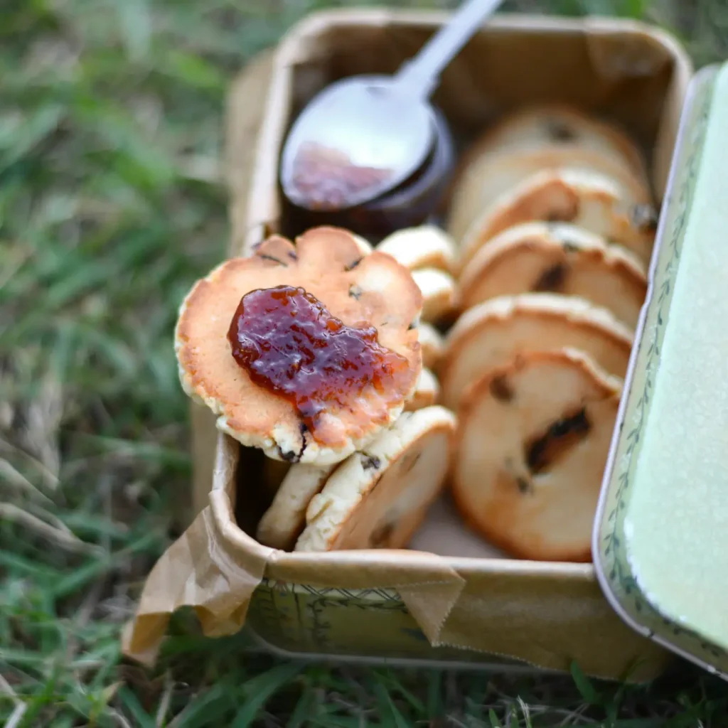 ビスケットとスコーンの間のような食感だから「ビスコーン」、ほろほろのポルボロンクッキーに合わせたのは、なんと梅干し!粉砂糖の甘みと、梅の酸味・うまみが対照的です。