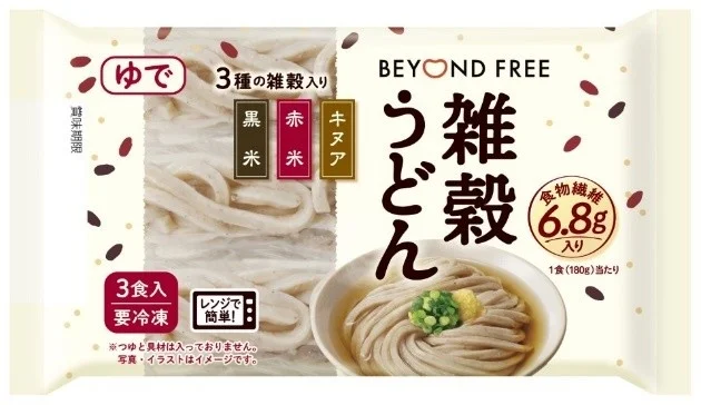テーブルマーク株式会社(本社:東京都中央区、代表取締役社長:松田要輔 氏)は、植物由来の冷凍ミールブランド「BEYOND FREE(ビヨンドフリー)」より、3種の雑穀を使用した「雑穀うどん キヌア・赤米・黒米入り」を、2026年3月6日から、オンラインショップにて発売中です。本商品は、”冷凍うどん”を、雑穀を手軽に日常に取り入れる新たな選択肢として提案することを目指して開発しました。事前に実施した試食調査では98.2%※の方が「おいしい」と回答しました。