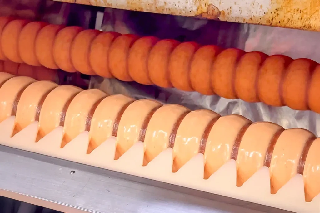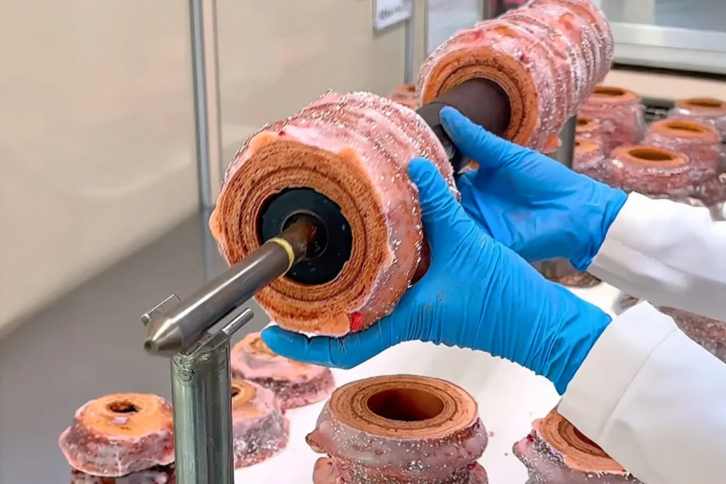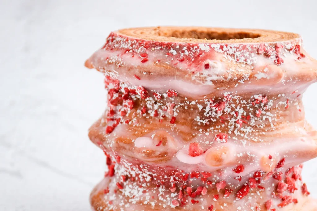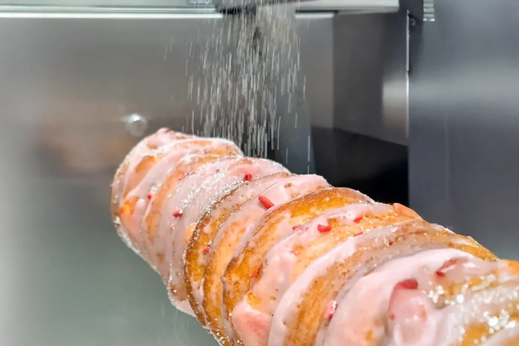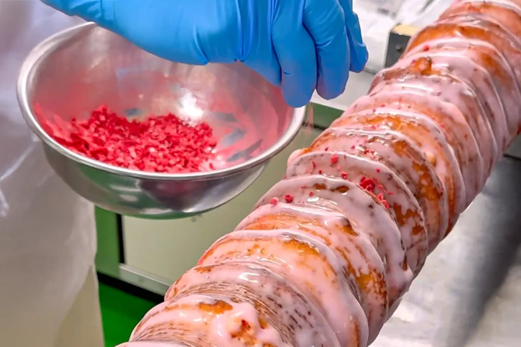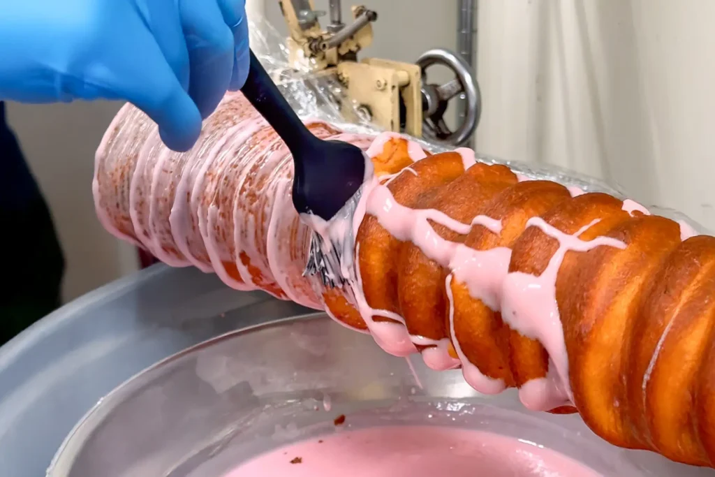 焼き上がる瞬間まで、美しいピンク色を守る―― ピンクの“山脈バウム”